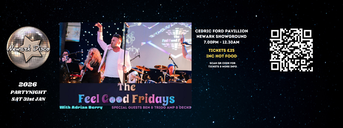 Join us on Saturday 31st January for another amazing Party Night Featuring the Fantastic 8 Piece Party Band – The Feel Good Fridays featuring Adrian Berry Also warming up the night will be our good friends Amp & Decks and DJ’s Paul Walker & Jerome Fox from Newark Disco will be closing the night